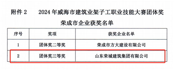 我公司榮獲2024年度建筑業架子工職業技能競賽團體三等獎
